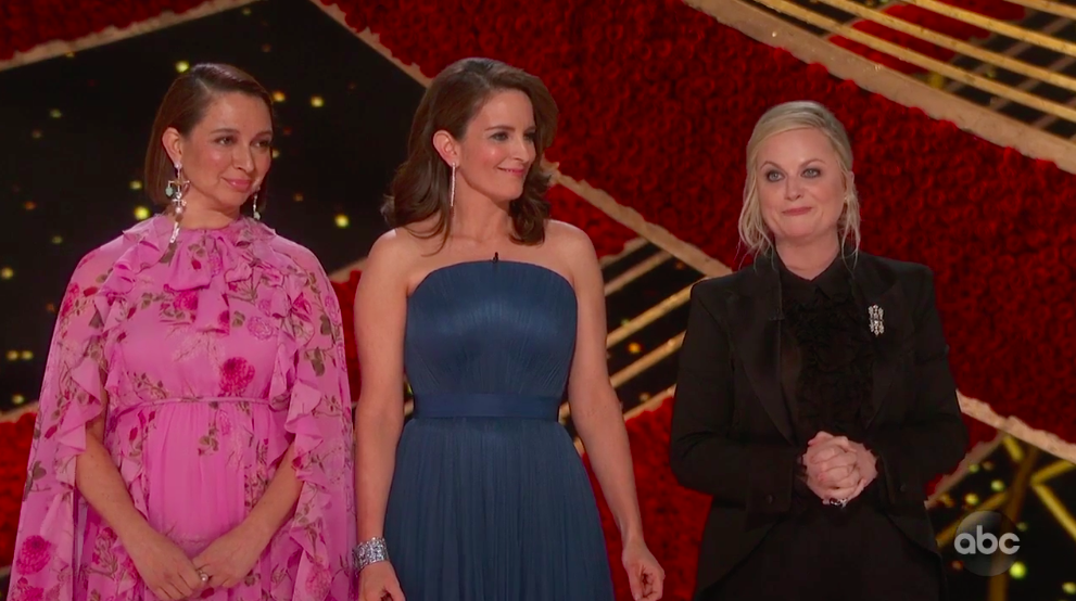 Tina Fey, Maya Rudolph, and Amy Poehler! They’re not hosting but now that they’re up there I really wish they were. More of this please world.